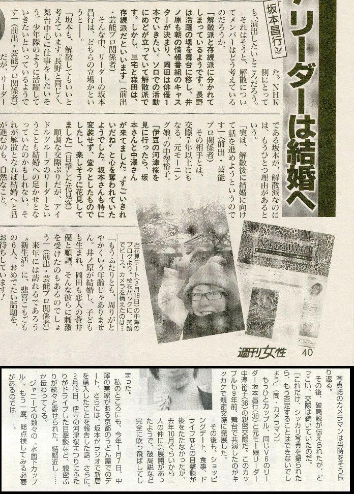 「坂本クンはよくも悪くもまじめすぎるんですよ。一時は将来を不安視して、1度、ジャニーズを脱退したこともあるほど。リーダーとしての責任感も強いですし、結婚も、自分の仕事に安心できるまではと、踏み切れていないのでは!?」(芸能プロ関係者)